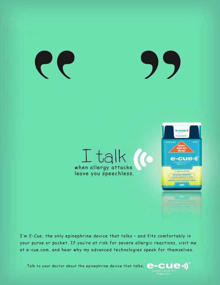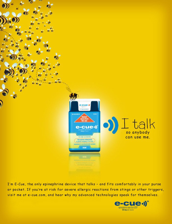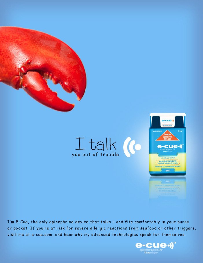 Developed digital and print concepts for a new pocket-size self-injector for people severely allergic to certain foods, insect stings, and other triggers. For the past 25 years, the go-to device in this category has been the Epi-Pen. This campaign seeks to grab substantial market share by focusing on the new device's unique audio technologies that talk allergy sufferers or their caregivers through an anaphylactic attack with step-by-step voice instructions.