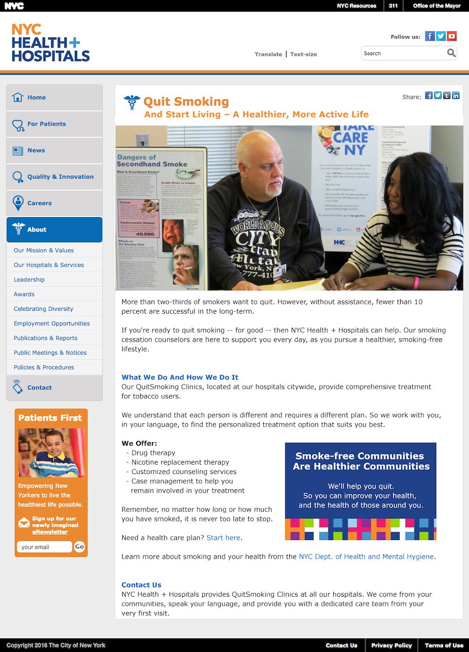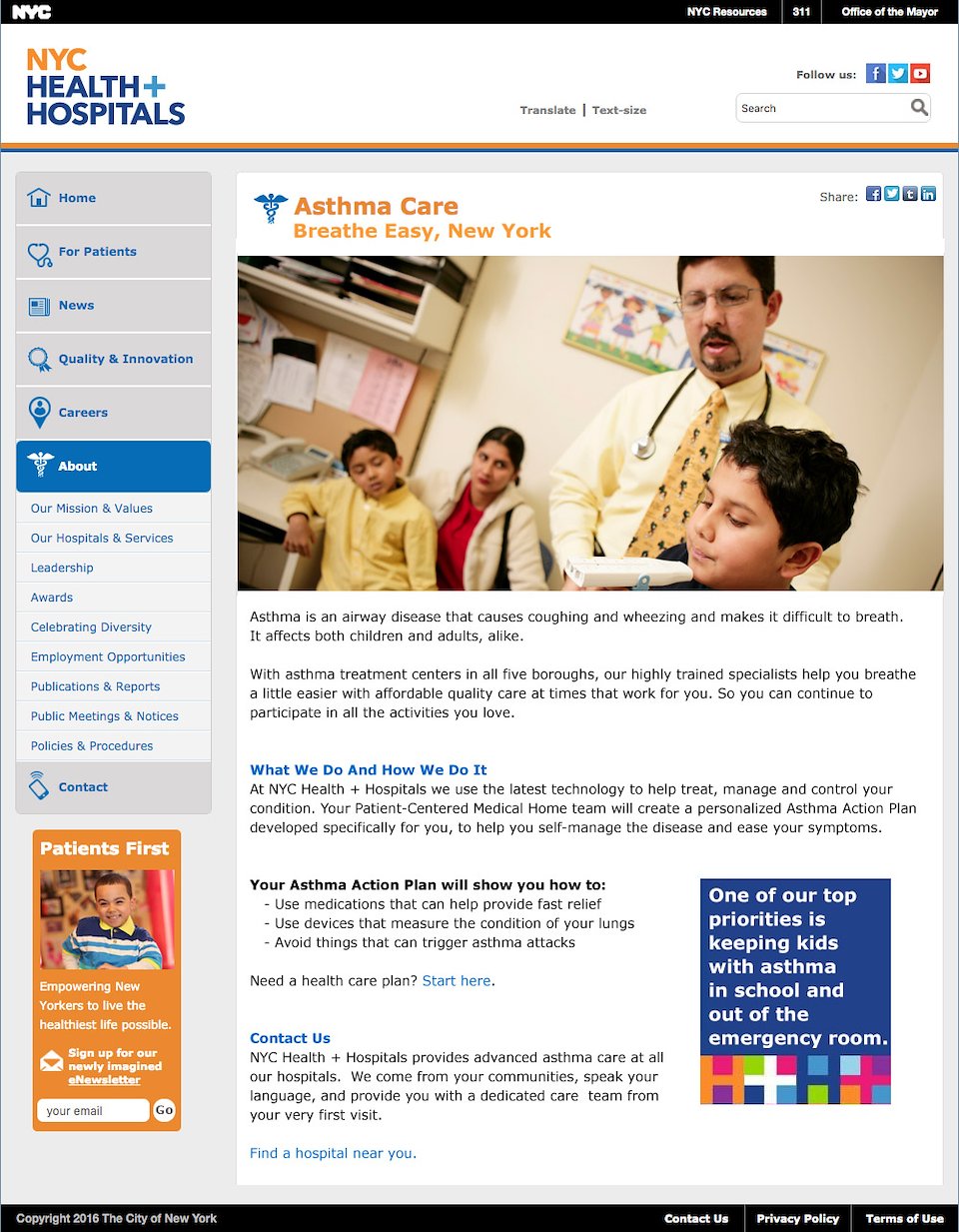 Pitch work to shorten and simplify current site copy, and rework the voice and tone to comply with a 2016 “patient-first, community-first” rebranding initiative.