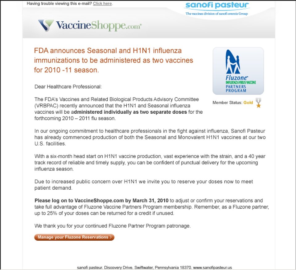 Email to healthcare providers announcing the FDA's plan for the production of flu vaccine for the upcoming season.