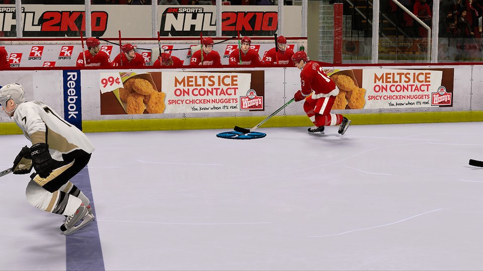 Contextual in-game ad for NHL 2K10. Just how hot are Wendy's Spicy Chicken Nuggets? They "melt ice on contact."