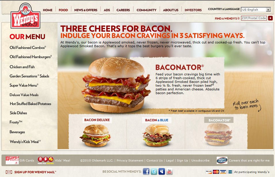 Interactive landing page for 3 types of Wendy's baconburgers.