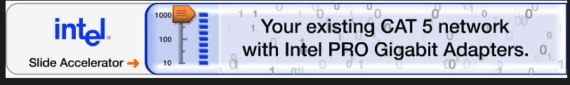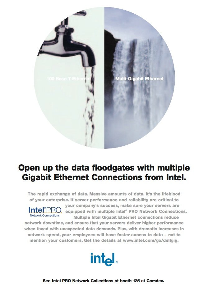 Intel gigabit print ad and banner: Targeted to IT professionals, dramatizing data bandwidth capabilities.