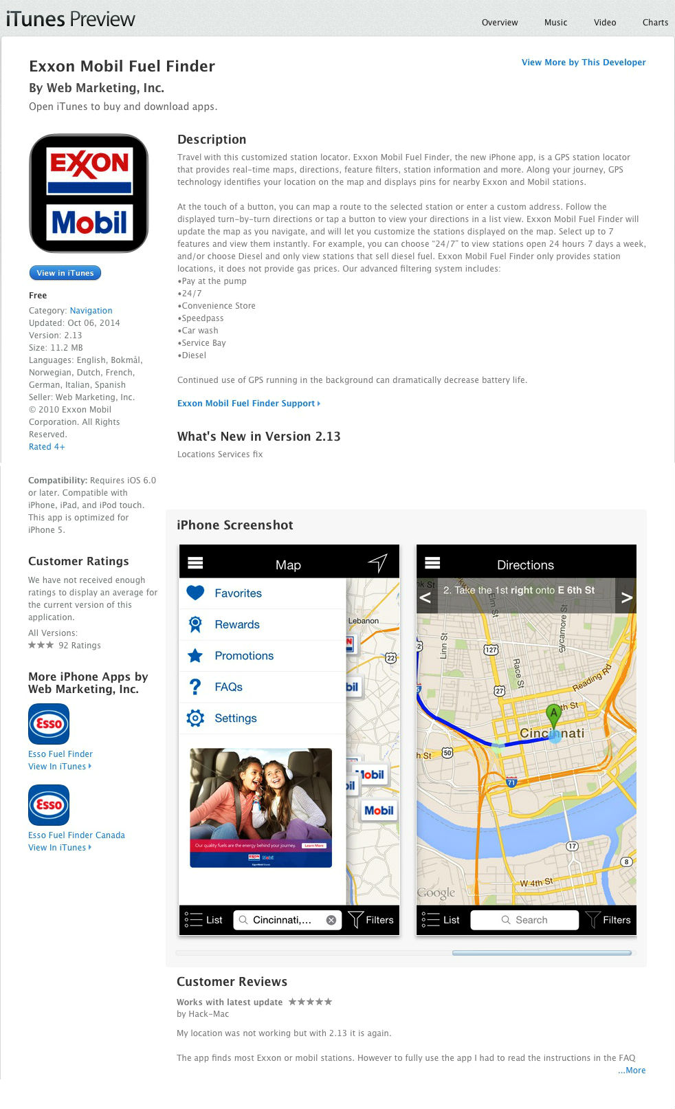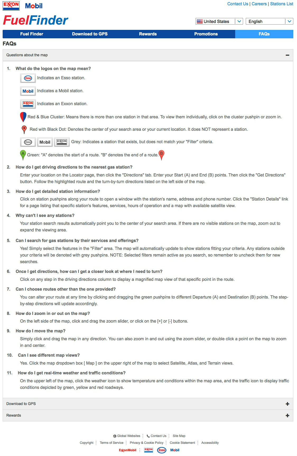 Wrote copy supporting the Exxon Mobil Fuel Finder app (web and mobile) which provides drivers with real-time maps, driving directions, search filters and locations of thousands of service stations worldwide. Includes info on promotions and loyalty rewards programs.