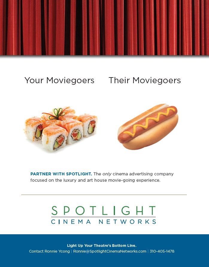 Trade ad targeted to theater owners, demonstrating how Spotlight understands the independent moviegoer demographic.